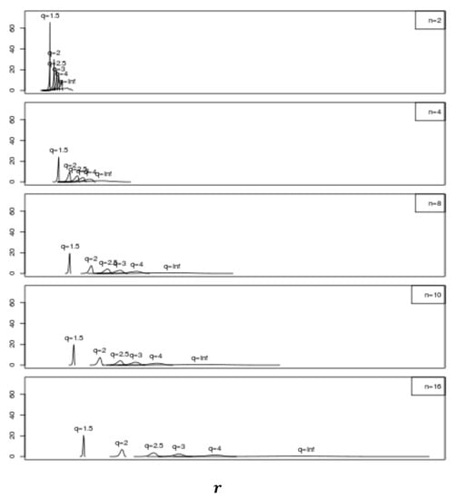 value increases, the distribution broadens, and the value of the pdf peak decreases with increasing