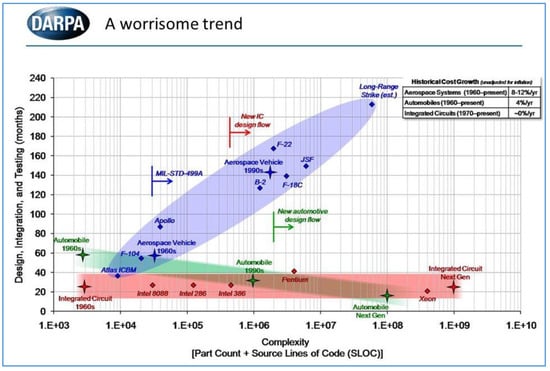 The PPP created with this initiative is a complex socio-technical system working for and with U.S. manufacturing enterprises who face even more challenges of complexity with what can be designed, built, sustained, and analyzed to meet customer requirements. Product and process complexity is constantly increasing while the lead time to develop these products from design to the customer is decreasing (Figure 3) []. Increased complexity, in both organizations and products, creates difficulty in understanding the relationships among subsystems, can increase unproductive behaviors due to tunnel vision into specific system components and negatively affect communications []. The factory of the future or agile organization is within reach, with prospects of automation, affordability, and transformation of our manufacturing workforce [].