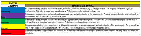 The five invited full proposals presented five unique architectures. These architectures ranged from a loose confederation of existing non-profit centers to a new organization specifically developed for this initiative. Each Government reviewer was provided complete access to the responses from the proposal teams to evaluate on their own. The reviewers were also trained on the analysis approach and tool to be used, particularly on how to apply the rating scale (Figure 5) to the proposal team’s response to the system requirements.