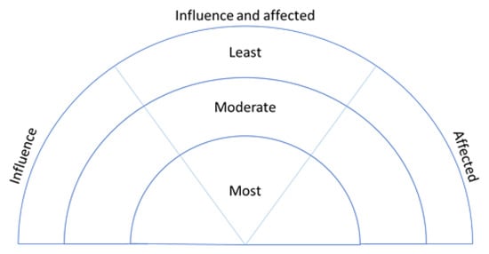 First, modellers and/or stakeholders must identify variables into endogenous (arising from within) and exogenous variables (beyond the system) []. Exogenous variables are important considerations to understanding a system, however, do not have important feedback compared to endogenous variables. Otherwise, they should be considered as endogenous variables and the model boundary must be expanded []. Incorrectly identified endogenous variables will result in narrow boundaries and a limited ability to propose solutions [,]. Despite the importance of variable classifications, how variables are classified as endogenous or exogenous is unclear and depends on the stakeholders’ and modellers’ interpretations. This leads us back to ‘who’-the-stakeholders-are argument. Furthermore, the endo/exogenous variable classifications are binomial and lead a modeller to focus on what lies within the model. The endo/exogenous classification does not discriminate the different degrees of variability that may arise within or beyond the model boundary. Such a classification could portray the importance or otherwise of variables in the decision-making process, and their opportunity to manipulate the system. However, our world is entangled with overlapped or embedded systems. Therefore, modellers must look inside, between and outside the system boundary [].