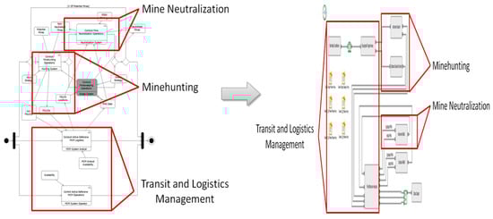 - Becker, N.; Byram, T.; Frank, D.; Hogan, K.; Kim, R.; Miller, G.; Schonhoff, S.; Myers, S.; Whitehouse, H. Application of Model-Based Systems Engineering (MBSE) to Compare Legacy and Future Forces in Mine Warfare (MIW) Missions; Capstone Report; Naval Postgraduate School: Monterey, CA, USA, 2014. [Google Scholar]