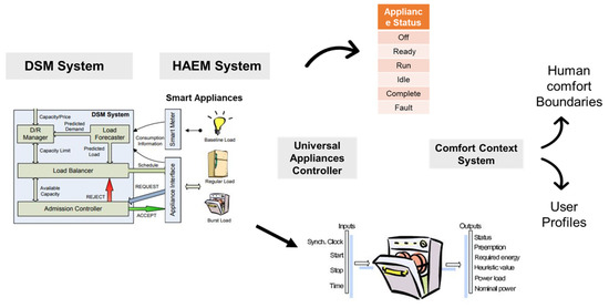 A Universal Appliances Controller (UAC) controls appliance employing interfaces and retrieves information on the dwelling consumption through devices such as smart meters. Regarding the issue of communication with appliances, Nichols et al. have presented a universal appliance interface that enables to design a controller with different types of interfaces for a wide range of common use appliances [25]. This approach could be used in developing appliance adaptors for home energy management.
