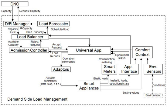 The aim of SHs based Demand response (DR) is to provide a flexible two-way energy feedback whilst (or shortly after) the consumption occurs [24]. It can manage consumption by applying load shift or shed strategies to relieve capacity during peak hours and when system reliability is threatened [4]. This section introduces the proposed architecture of the Demand Side Load Management system and describes the functionalities of each module (Figure 2).