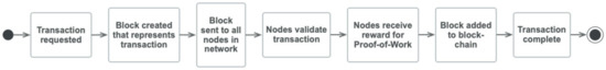 The architecture of a blockchain will determine whether it can be classed as public/consortium, permissioned or permissionless, etc. Blockchain structure and its components can be decomposed into their most basic form as [77] follows; these help understand the process of how a transaction within a blockchain occurs as in Figure 2: