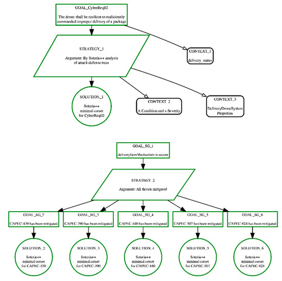 The various assurance case techniques generally fall into two leading paradigms. The first paradigm focuses on claims, evidences, and structured arguments which justify how the evidences can satisfy the claims. Techniques in this category include GSN patterns to overcome challenges on how to integrate and harmonize critical issues on safety in addition to security for their systems [17,18,19,20,21]. The second paradigm focuses on building an argument attached to AADL models. The assurance cases are automatically updated as the architecture model evolves, and they never fall out of sync with the model [22,23]. An important difference in the described work is that the VERDICT tool automatically builds a GSN assurance case for safety and security using the evidence that is generates. This GSN assurance case is attached to AADL model, mission, safety, and security requirements.