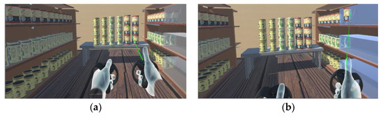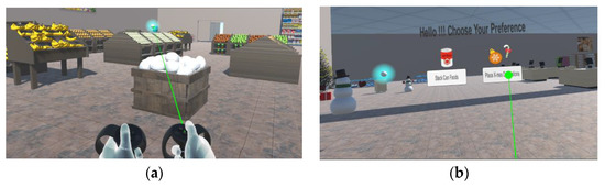 A VR grocery chain was chosen because a majority of the study participants would be familiar with a grocery store and easily grasp concepts such as stocking shelves and displaying merchandise. Furthermore, this type of environment would also allow for multiple scenes and stories to be developed to guide the user through all 39 questions. In each scene, the user assumed the role of the grocery store manager. As the users began each prompted task, they were asked to make decisions that they thought were best for the store. Each decision they were prompted to make corresponded to a question and recorded the user’s decisions. Each decision-making event was presented in a non-biased, binary way that allowed the users to choose their personal preference and give genuine reactions to their decisions without feeling that a wrong decision was made because, within the ST practice, there are no “bad” or “good” decisions.
