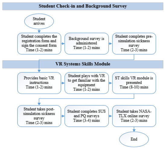 Before starting the VR experience, an ID identifier and a computer were assigned to each participant so that the information from the systems thinking questionnaire would be matched to the data from the VR scenario. Each student was assisted by a member of the research team to ensure that the experiment was conducted properly. All subjects gave their informed consent for inclusion before they participated in the study. The study was conducted in accordance with the Declaration of Helsinki, and the protocol was approved by the Institutional Review Board of Mississippi State University (IRB-18-379).