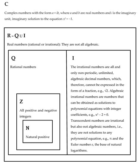 While the usual numerical strategy of using IRNs consists of simplifying them by using their approximated values from truncated computations, determining the granularity assuming the insignificance of lower levels, and assuming de facto a conceptual reverse reductionist approach that is microscopically limited, the use of other approaches may relate to the consideration of properties of decimal parts of IRNs, such as how they occur, e.g., level of randomicity; distribution, e.g., clusterizations; combinations of cases; quasi-periodicities, e.g., in correspondence with properties of chaotic behaviors and attractors in the phase space and in whirlpool-like phenomena, quasi-periodic solutions, and quasi-systems []; and other contextual properties, e.g., topological. Quasi-periodicity is intended to be related, for instance, to irregular periodicity, recurrences with a component of unpredictability, and increasing regularity over multiple periods. We focus on their properties and usage rather than on their computation in analogy, for instance, with imaginary numbers, e.g., the use of imaginary time in some approaches for special relativity and quantum mechanics.