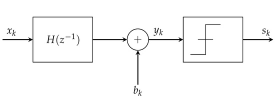 The binary output defined in Equation (4) is used in the LIMBO algorithm with threshold , and the unknown internal signal is defined in Equation (3).