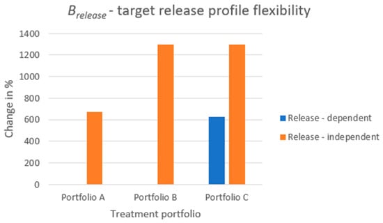 Product variety for each treatment portfolio for both dose-dependent and -independent release scenarios.