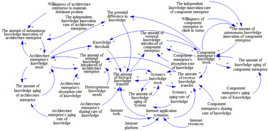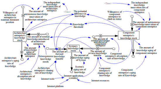 | Feedback loops10 | Architecture enterprise’s knowledge stock→Knowledge threshold→The amount of forward knowledge transfer→System’s knowledge stock→The amount of reverse knowledge transfer→The amount of external knowledge introduced of architecture enterprise→Architecture enterprise’s knowledge stock |