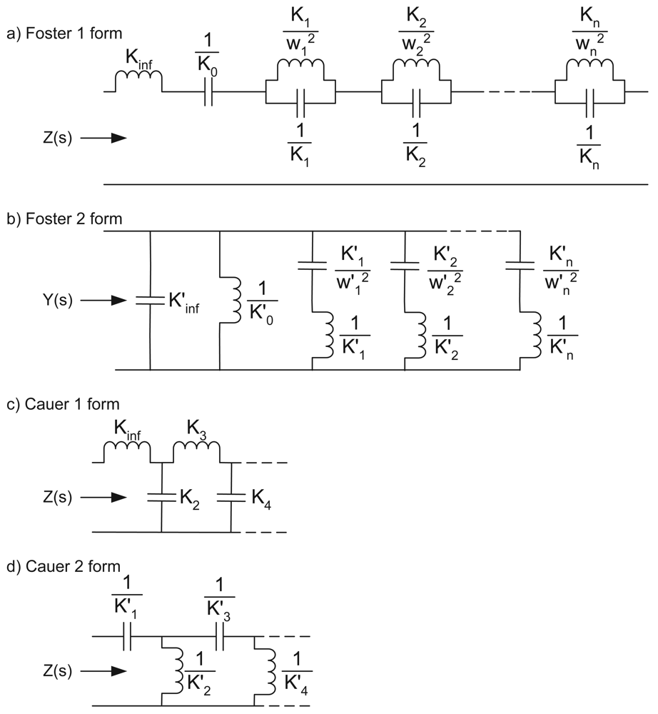 Foster and Cauer network realisations. These allow simple determination of the required component values by continued and partial fraction expansions.
