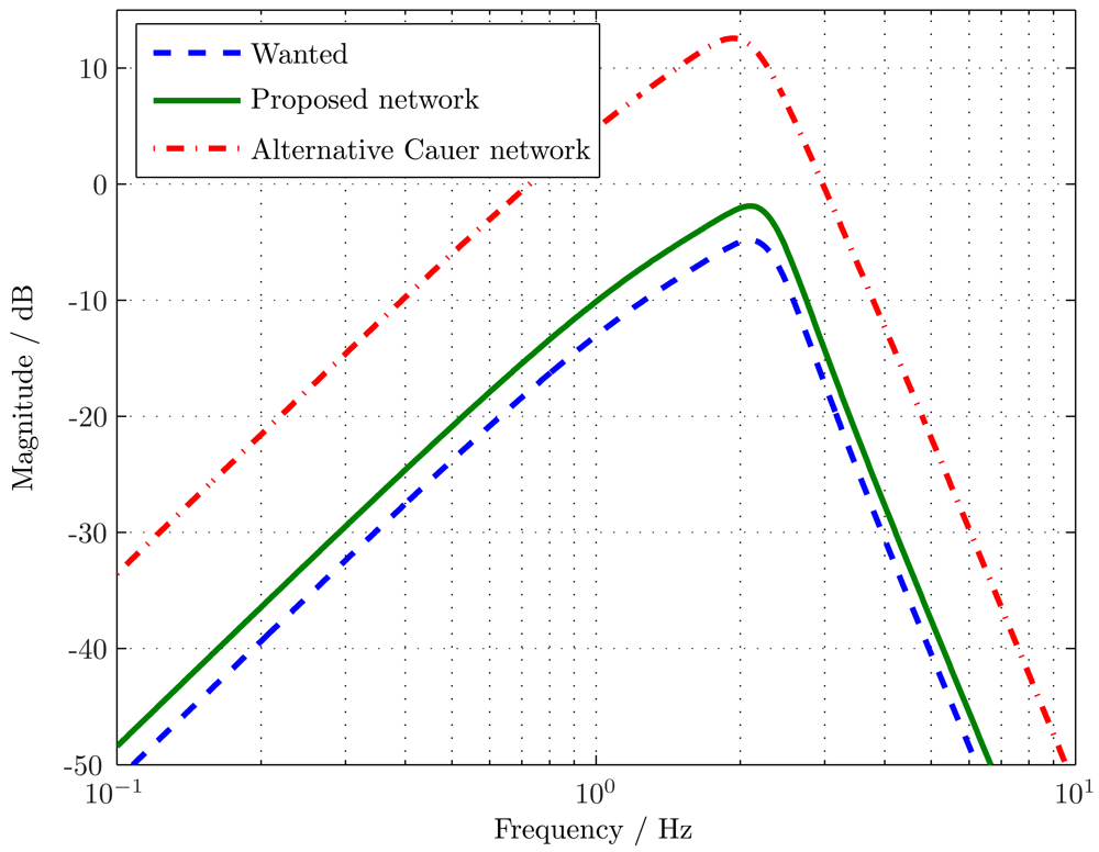 Despite the rise of digital filters, analogue domain filters are still an essential part of many electronic systems; for example in high frequency circuits where high frequency and high resolution ADCs are ostly []. Increasingly analogue filters are also being used in low frequency applications such as in analogue signal processing units in wearable physiological sensors; see [–] as examples. For such battery powered physiological monitors power efficiency is essential, and the use of analogue signal processing allows the low dynamic ranges and signal-to-noise ratios of many biological signals to be exploited. It is well known that analogue filters are potentially much more power efficient than their digital counterparts in such circumstances [,].