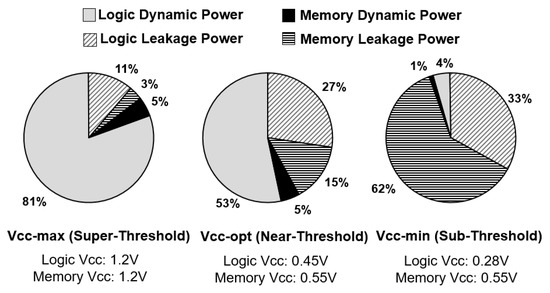- Pinckney, N.; Sewell, K.; Dreslinski, R.G.; Fick, D.; Mudge, T.; Sylvester, D.; Blaauw, D. Assessing the performance limits of parallelized near-threshold computing. In Proceedings of the 49th Annual Design Automation Conference, Association for Computing Machinery (ACM), San Francisco, CA, USA, 3–7 June 2012; p. 1147. [Google Scholar]