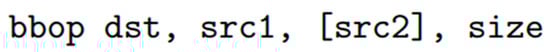 - Ahn, J.; Yoo, S.; Mutlu, O.; Choi, K. PIM-enabled instructions: A low-overhead, locality-aware processing-in-memory architecture. In Proceedings of the ACM/IEEE 42nd Annual International Symposium on Computer Architecture (ISCA), Portland, OR, USA, 13–17 June 2015; pp. 336–348. [Google Scholar] [CrossRef]