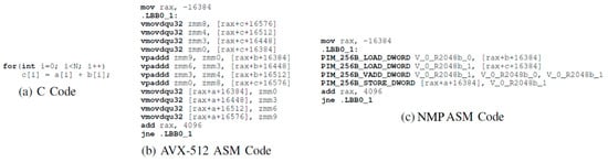 - Ahmed, H.; Santos, P.C.; Lima, J.P.C.; Moura, R.F.; Alves, M.A.Z.; Beck, A.C.S.; Carro, L. A compiler for automatic selection of suitable processing-in-memory instructions. In Proceedings of the Design, Automation Test in Europe Conference Exhibition (DATE), Florence, Italy, 25–29 March 2019; pp. 564–569. [Google Scholar] [CrossRef]
