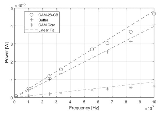 The CAM dynamic power in write mode is given by the well-known Equation (1):