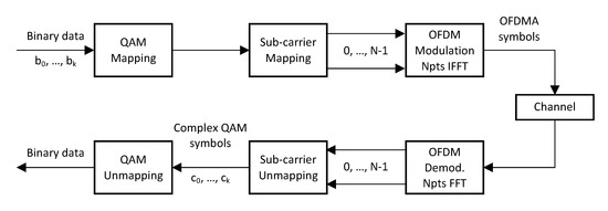 Block Diagram of the OFDMA transmitter and receiver paths.
