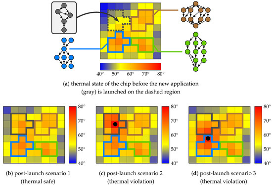 - Pourmohseni, B.; Smirnov, F.; Khdr, H.; Wildermann, S.; Teich, J.; Henkel, J. Thermally Composable Hybrid Application Mapping for Real-Time Applications in Heterogeneous Many-Core Systems. In Proceedings of the IEEE Real-Time Systems Symposium (RTSS), Hong Kong, China, 3–6 December 2019; pp. 220–232. [Google Scholar]