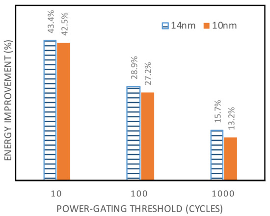 At the super-threshold domain, various coarse-grained power-gating techniques have been proposed to turn-off idle cores [102,103,104]. The cores are turned-off when determined idle time is observed. However, such approaches require a state preservation mechanism and typically impose a long wake-up latency, which is costly at NTC. Furthermore, two methods based on the power-gating of execution units are proposed in [105]. These techniques allow the power gating of an entire execution unit. However, some of the instructions of an execution unit are utilized rarely by the running applications. Therefore, analyzing the instruction utilization pattern could reveal opportunities for fine-grained power-gating.