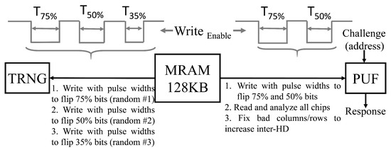 Note that we have selected MRAM since it is very promising due to its low static and read power consumption. However, the proposed post-processing techniques to improve the inter-HD of PUF and entropy of TRNG are applicable to other memory technologies.