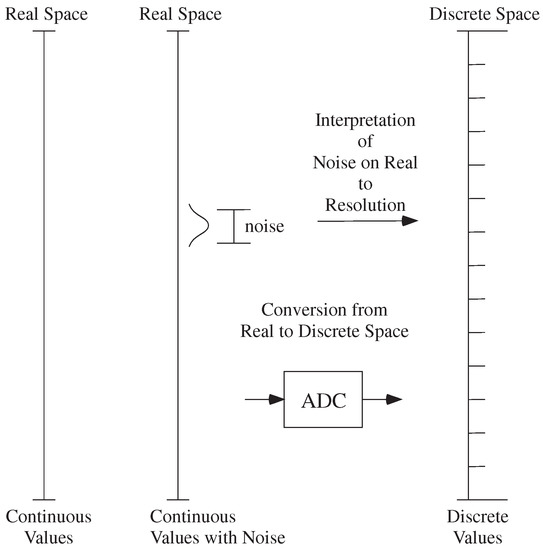 Resolution (Figure 6) is a useful abstraction to represent continuous-valued functions with uncertainty and noise, and yet, the abstraction does not constrain the continuous-valued reality. Noise and uncertainty are aspects of the underlying numerical analysis and the resulting computation errors (whether they grow or decrease), but the computation model still operates over real values. The view that real world always has to be interpreted at a finite resolution, through an Analog-to-Digital Converter (ADC) of a finite number of bits, misses the richness of the underlying capability. ADC is a classification between a real-valued world and a discrete-valued world.