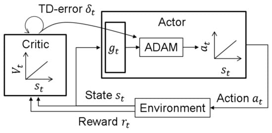 Note that the value function under the optimal policy is defined as , where is the state space. We must seek these two under the following two conditions: (1) The reward for each state–action pair is unknown. (2) The state transition probability is unknown. Getting samples from the interactions with the environment helps the agent capture information about the reward and state transition probability to learn the policy and the value function. In actor–critic RL, the actor is in charge of the first purpose and the critic the second one. Each goal can be achieved by policy gradient theorem and TD() algorithm (refer to [2]), which we opt for in this paper, or by the use of neural networks.