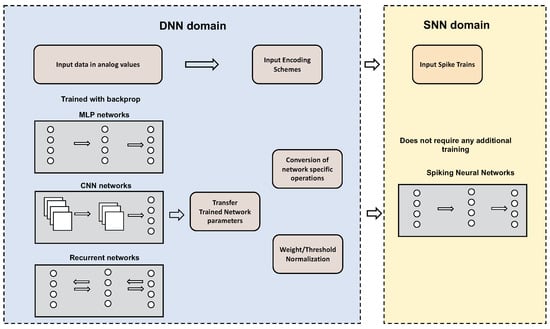 - Rueckauer, B.; Liu, S.C. Conversion of analog to spiking neural networks using sparse temporal coding. In Proceedings of the 2018 IEEE International Symposium on Circuits and Systems (ISCAS), Florence, Italy, 27–30 May 2018; pp. 1–5. [Google Scholar]