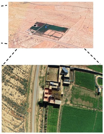 The type of camera used in this study operated on RGB bands. The reason for using this camera is the low cost of this type of sensor compared to multispectral cameras that operate on near-infrared or red-edge bands. In this study, we also used another field located in the Guelmim-Oued Noun region, with a longitude of 29°00′36″ N and a latitude of 10°12′39″ W. The selected field’s perimeter is about 0.78 Km, with a surface area of 3.73 Ha2. Figure 3 shows the localization of the second field.