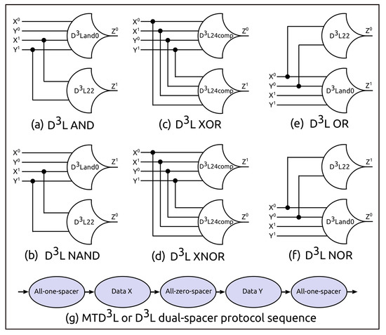 - Fant, K.M.; Brandt, S.A. NULL Convention Logic: A complete and consistent logic for asynchronous digital circuit synthesis. In Proceedings of the International Conference on Application Specific Systems, Architectures and Processors, Chicago, IL, USA, 19–21 August 1996; pp. 261–273. [Google Scholar]