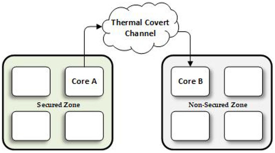 Covert channels are communication channels used to transmit information. In chip-level security, covert channels are types of attacks that can create the capability of transferring data and information between processes that are not allowed to communicate by the system security policy. Two parties with the aim to exchange covert information can easily communicate and transfer information over a shared network without being detected. Therefore, it is hard to identify covert channels, which hence can contribute to very serious damage to security approaches if they are used for malicious purposes. In many communication media, the covert channel information is seen, such as timing, heat, or indistinct sounds. There is a wide range of side channels that may exist in a multi-core system, however, a covert channel, which uses heat as a way to transmit information and data, can be particularly dangerous.
