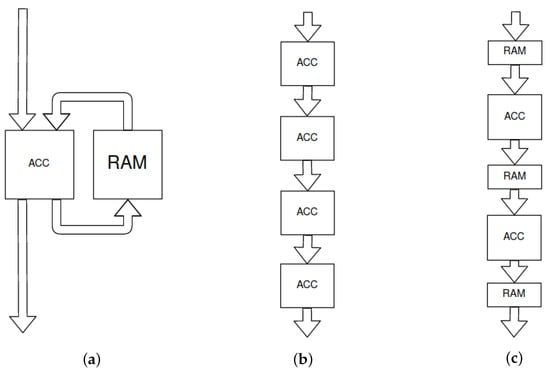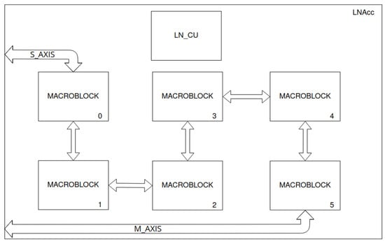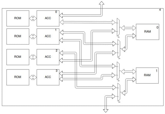 Macroblock’s scheme—two shared memories (RAM and ROM) and four layer accelerators (ACC). The last macroblock in