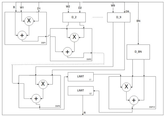 Depthwise processing unit—cascaded connected DSPs. The design is based on [