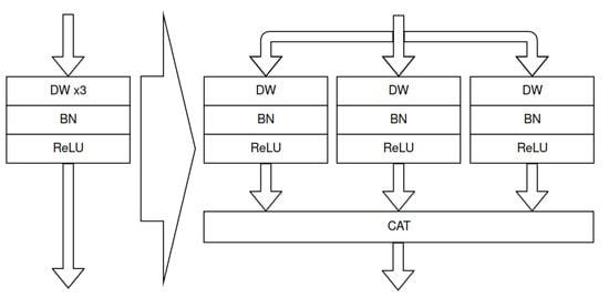 Multi-depthwise convolution replaced by concatenated 3 single depthwise convolutions. The presented transformation allows for multi-depthwise convolution acceleration with Vitis AI DPU.