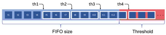 Figure 5 shows an example of an internal representation of a FIFO buffer of size 12 tokens () where an action consumes 3 tokens per firing and is executed with 4 SIMD threads () in parallel. In the example, the FIFO buffer needs a of minimum size .