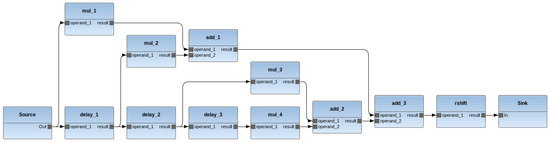 Figure 7 reports the dataflow network of a simple FIR filter application program. The network is composed of 13 actors. The corresponding source code is publicly available in the web repository accessible at this URL [31].