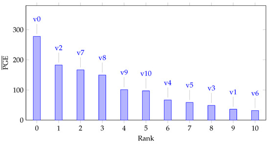 The resistance offered by Netlist Randomization as a countermeasure against SCA depends upon two major components: the uncertainty in the power consumption resulting from the dynamic exchange of variants during run-time, and the leakage behavior of the individual variants. In this section, we quantify the resistance of individual variants and rank them to decide which particular group(s) of variants would be most beneficial for Netlist Randomization. For ordering the variants, we again utilize the metric. As mentioned in Section 6.2.3, the value provides a measure of the difficulty in extracting the key or in other words breaking a variant. Figure 9 illustrates this idea and quantifies the resistance of individual variants against SCA. To rank the variants, we perform an average over the values in Figure 9. The values for each variant are averaged over the entire length of traces. Figure 11 lists the variants ranked from 0 to 10 (0 corresponding to the highest rank) in order of their average PGE values.