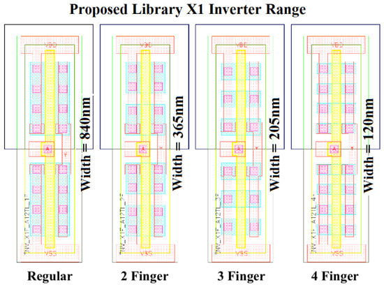 - Liao, R. Digital circuit design for robust ultra-low-power cell library using optimum fingers. In Proceedings of the 2012 IEEE 55th International Midwest Symposium on Circuits and Systems (MWSCAS), Boise, ID, USA, 5–8 August 2012; pp. 446–449. [Google Scholar] [CrossRef]