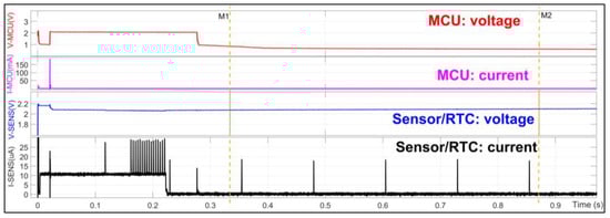 - Measure the load current (I-MCU) and the voltage of the MCU (V-MCU or VSYS).
