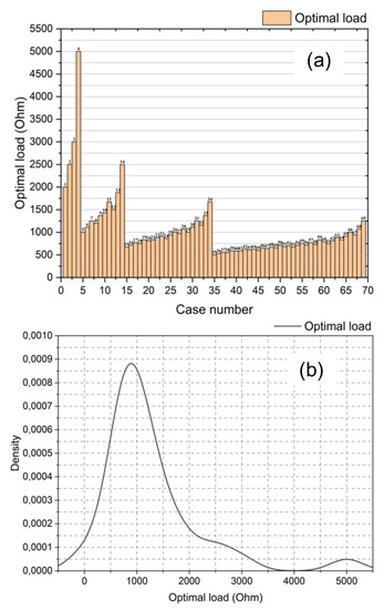 The near-optimal load identification is pictured in Figure 10. The DoE indicates that 1 k will act as a near-optimal or closely-optimal load value in a number of cases. This value is selected as a specification for the voltage conversion block. It is clear that over time the operation of the rectenna will not be optimal in the perspective of maximum power point. There is a trade-off regarding the load value and regarding the maximum harvested energy over a time horizon.