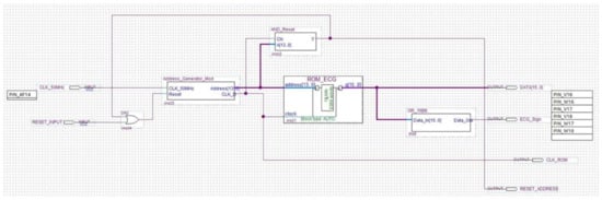 This block stores the pulse-transformed ECG (Figure 10). In particular, a string of 16 bits set to 1 represents the detection of an R peak, while a string of 16 bits set to 0 indicates the R peak absence. For debug purposes, the ROM block is not necessary because the designed hardware processes the real-time ECG signal.