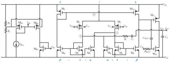 From (1), it is apparent that the first-stage transconductance can be boosted by appropriately choosing the aspect ratios