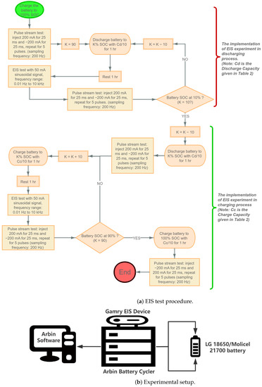 The EIS data are collected by the EIS device (Gamry interface 5000P). A Gamry EIS device and Arbin battery cycler are operated using the software named Mits Pro provided by Arbin. The voltage measurement error of the Gamry EIS device, as specified, is 0.2 mV [31].