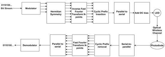 Block diagram of a system based on Orthogonal Frequency Division Multiplexing (OFDM) for optical wireless communication [31].