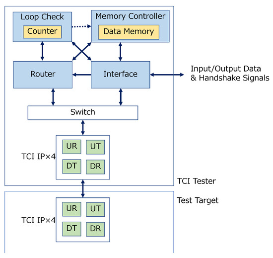 TCI Tester is layered on the Test Target, which does not have an observation function, to measure its characteristics (Figure 7). On the other hand, transferring packets using soft IP and performing long-term transfer tests should be possible. For this purpose, it is necessary to have a function of storing the contents of packets in memory and checking them later and a function of automatically sending and receiving packets to check that there is no error in data transfer. Therefore, to satisfy these requirements, we decided to switch between the RAW, CUBE, and LOOP mode.