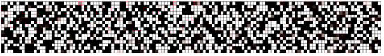 Under nominal conditions, the average percentage of total unstable bits in 20 groups of 2048 8T PUF cells is 7.71%; the raw BER is 1.17%. The corresponding BER of the worst corner is 12.21%. Most of the unstable readings can be fixed by the Data Processing block using TMV, which can be visualised in the golden bitmap generated in the key enrolment phase. For example, in the golden bitmap shown in Figure 9, squares with different colours represent the statistical results of the PUF stability, i.e., white indicates stable ‘0’, black squares show stable ‘1’ and different grey shades present the degree of bias of the cells. Most impressively, the worst corner BER can be decreased to 0% with Dark-bit masking coordinated with TMV in the worst voltage and temperature corners and in the field. The mask ratio is 21.78%. As a result, the hardware penalty for error correction is minimised.