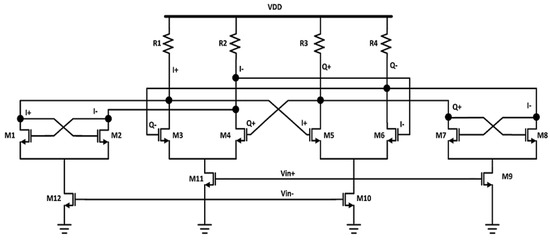 - Amin, N.M.; Wang, Z.; Li, Z.; Li, Q.; Liu, Y. A low power, low noise figure quadrature demodulator for a 60 GHz receiver in 65-nm CMOS technology. J. Semicond. 2015, 36, 045005. [Google Scholar] [CrossRef]