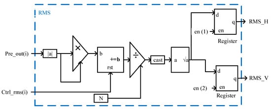 Figure 4 demonstrates the internal formation of the RMS calculator. The RMS features can be implemented using Equation (7).