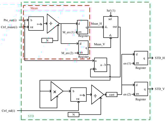 Here, represents the mean. For the hardware implementation, considering the absolute value of epoch amplitude, mean can be calculated using Equation (9).