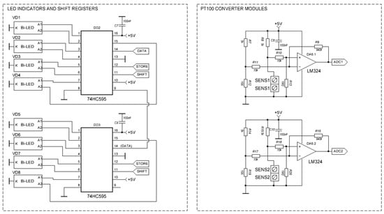 Figure 2. Electrical diagrams of the connection of control signal transfer registers and temperature sensors.
